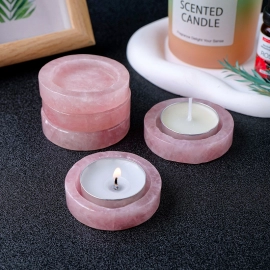 1PC Natural Crystal Rose Quartz Candlestick Powder Crystal Raw Stone Round Aromatherapy Candle Home Decoration